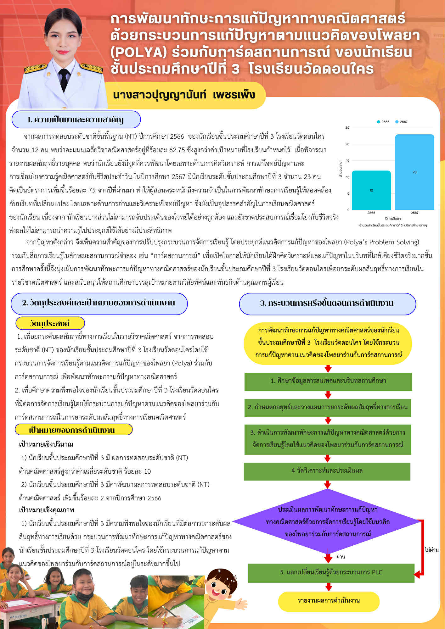 "การพัฒนารูปแบบการจัดการเรียนรู้โดยใช้กฎแห่งการฝึกหัด การทำซ้ำ ย้ำ ทวน (The Law of Exercise or Repetition) เพื่อพัฒนาผลสัมฤทธิ์การทดสอบระดับชาติขั้นพื้นฐาน (O-NET) วิชาภาษาไทย ชั้นประถมศึกษาปีที่ 6 โรงเรียนวัดดอนใคร"